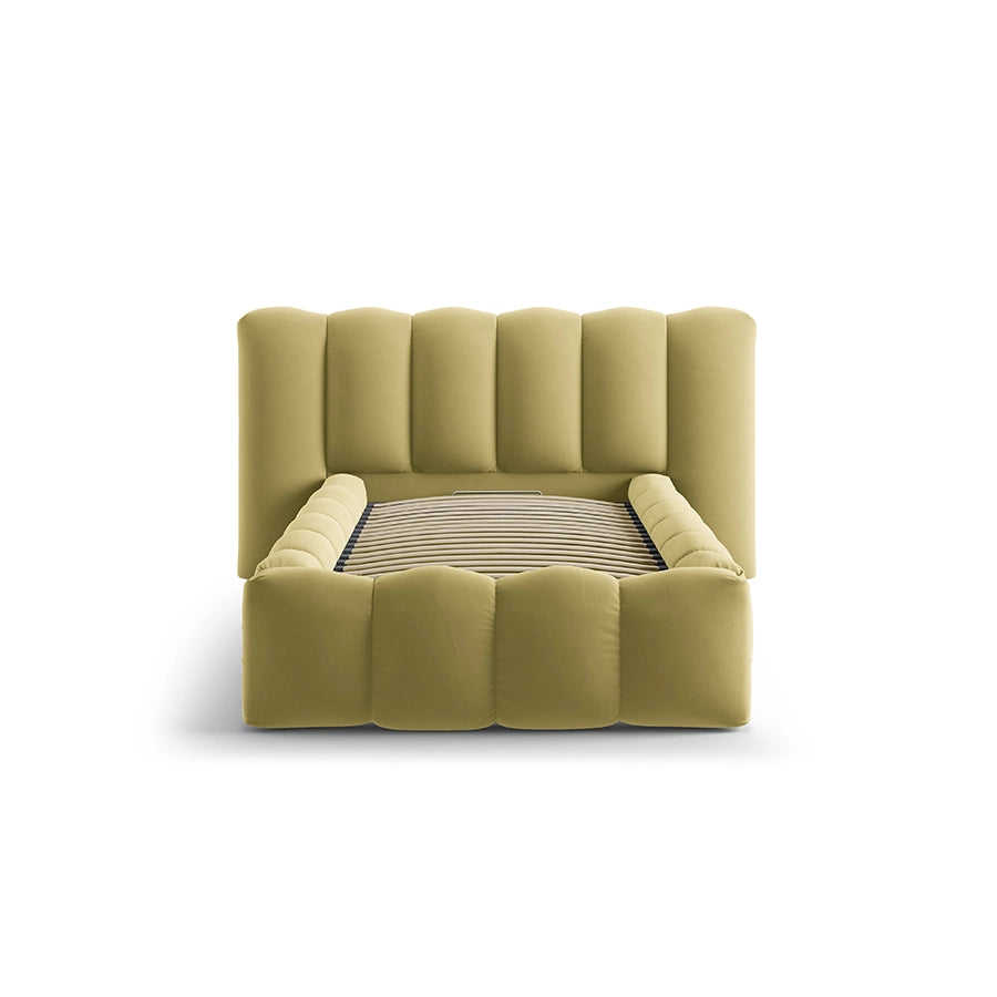 Un dormitor bine amenajat îmbină armonios liniștea vizuală cu confortul tactil — iar patul Lupine, în nuanța sofisticată de verde mud, este proiectat să realizeze exact această fuziune. Tapițeria din catifea densă aduce o textură plăcută la atingere și o profunzime vizuală calmă, în timp ce tonul inspirat de natură creează o atmosferă senină și elegantă, potrivită pentru orice stil contemporan.