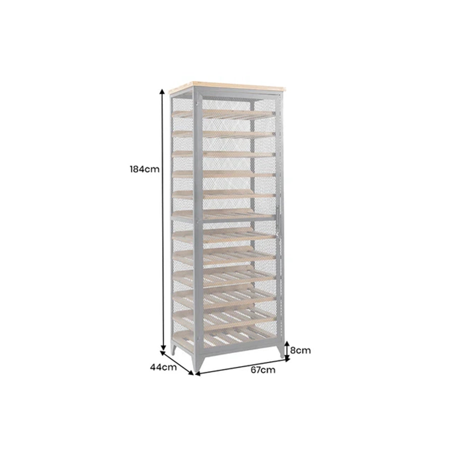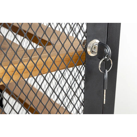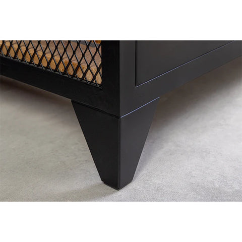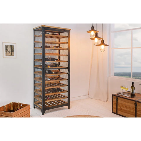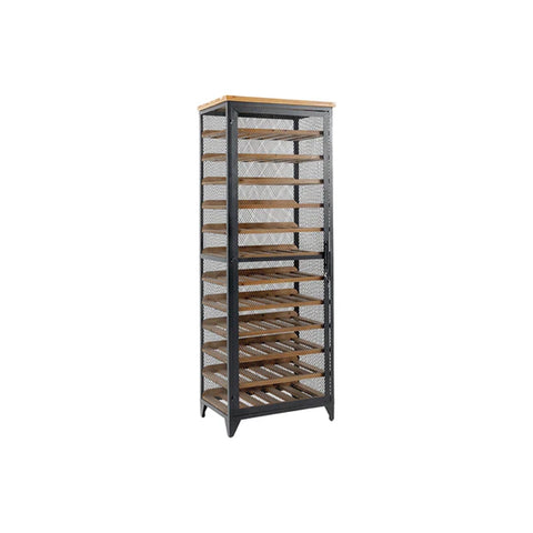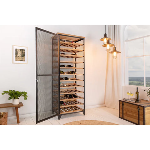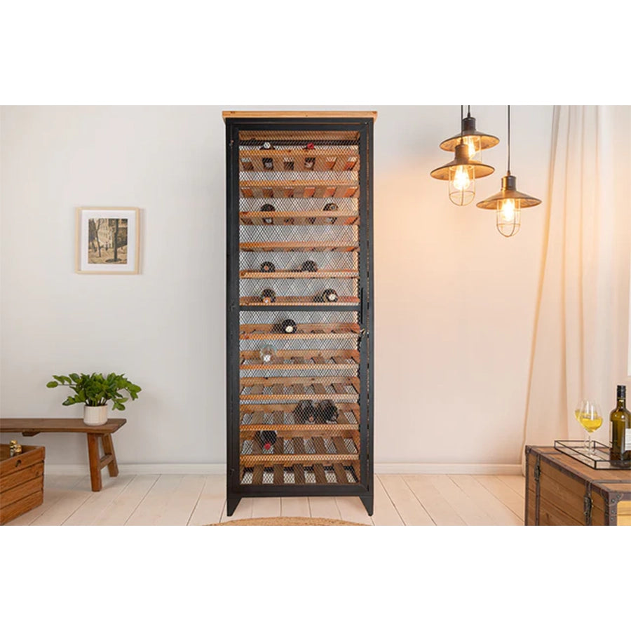 Un raft care combină frumusețea lemnului natural cu eleganța metalului — Bodega 185 oferă spațiu de depozitare generos și un design care se integrează în orice colț al casei, aducând un aer industrial, dar cald și primitor.