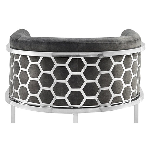 Un scaun care nu doar că te susține fizic, ci și estetic — când te așezi în el, simți cum spațiul tău devine mai sofisticat. Catifeaua reflectă lumina într-un mod blând, accentele silver pur și simplu atrag privirea și transformă rutina într-o mică ceremonie de stil. Momentul în care stai jos la masa de bar devine nu doar util, ci plăcut — un detaliu care te face să apreciezi acasă.