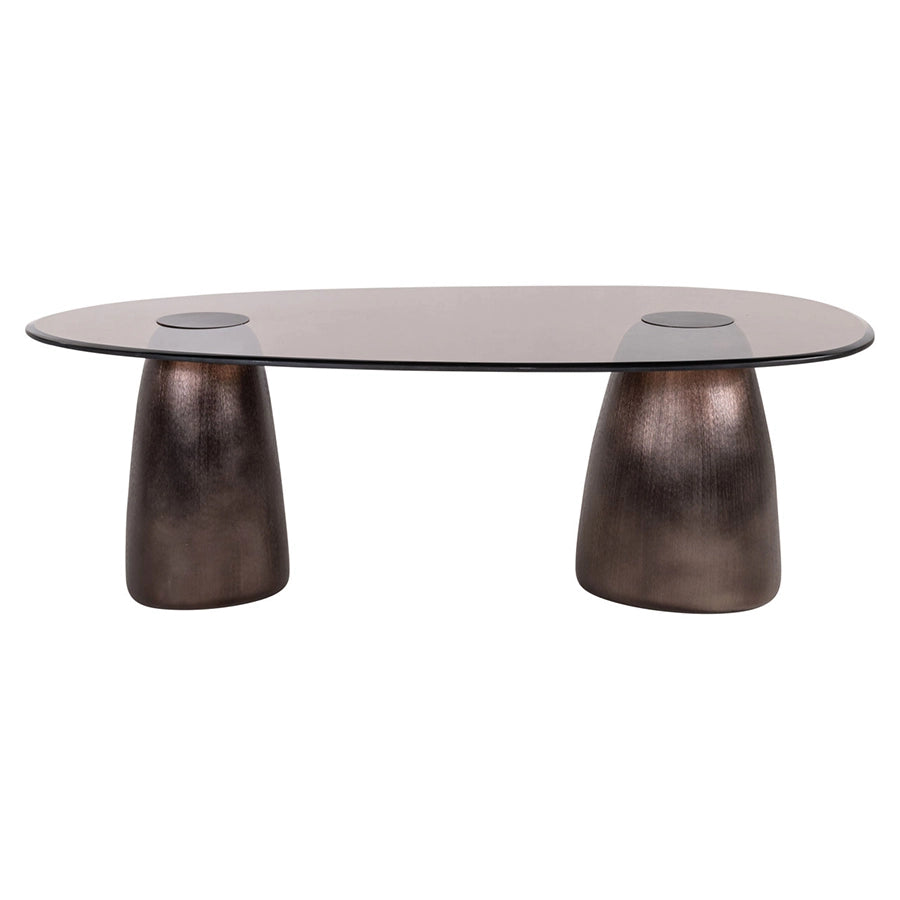 O masă de cafea ca Hayden devine centrul conversațiilor și momentelor relaxate în living, fiind suficient de spațioasă pentru platouri cu gustări, lumânări decorative sau cărți deschise. Finisajul bronz funcționează armonios cu tonuri calde — bej, grej sau teracotă — și aduce un contrast plăcut alături de mobilier din lemn sau textile neutre, fără să încarce vizual încăperea.