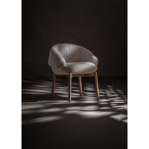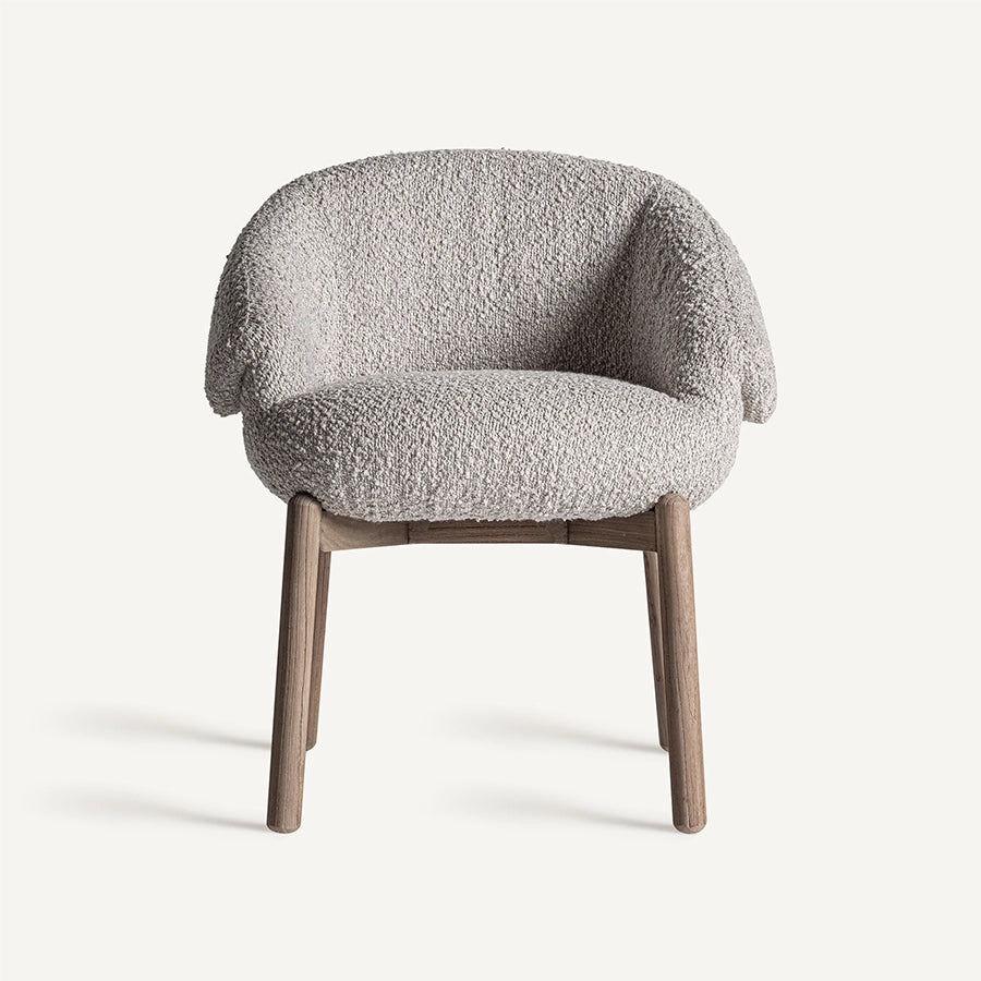 — Material: poliester bouclé, lemn de ulm