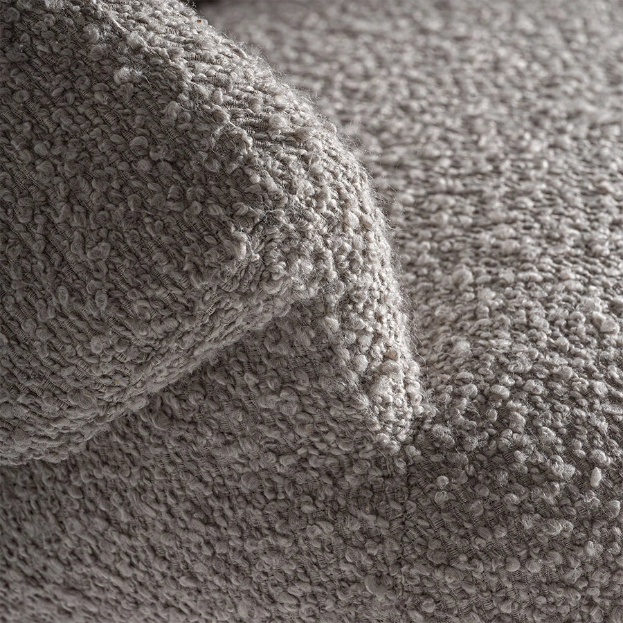 Structura țesăturii bouclé creează interes vizual și o atmosferă relaxată în interior, fiind apreciată pentru aspectul său texturat și rezistența în utilizare zilnică.