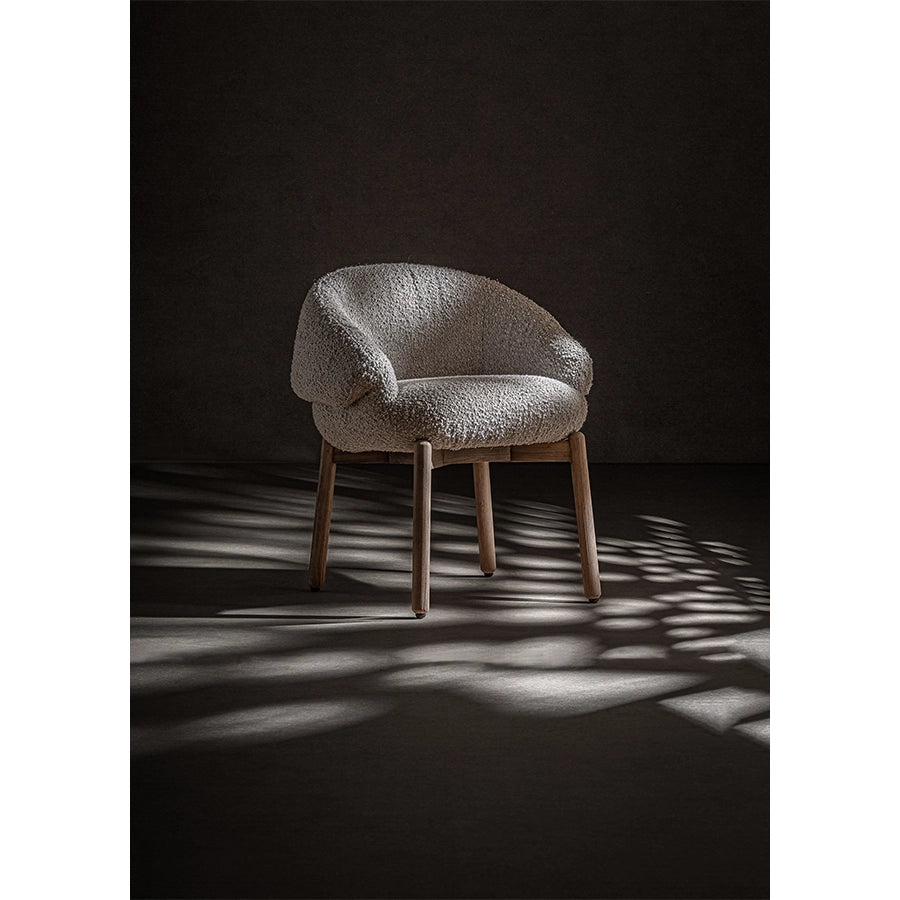 Atunci când stai la masă — fie că e o cină lungă cu prietenii, o conversație spontană sau câteva minute liniștite cu cafeaua de dimineață — ai nevoie de un scaun care să nu fie doar estetic, ci confortabil în mod real. Acest model din poliester bouclé Jacquard este gândit pentru acele momente în care vrei să rămâi așezat fără să simți rigiditate sau grabă. Textura moale și ușor granulată adaugă o senzație tactilă plăcută, iar tonul bej contribuie la un spațiu calm, ușor de locuit și de combinat cu restul casei tale.