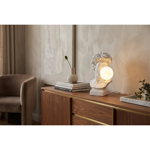 Veioza David albă se potrivește perfect într-un interior luminos sau minimalist, completând mobilierul în tonuri deschise și suprafețele curate. Așeaz-o pe o noptieră lângă pat sau pe o măsuță laterală lângă fotoliu pentru o lumină caldă seara și o senzație relaxată.