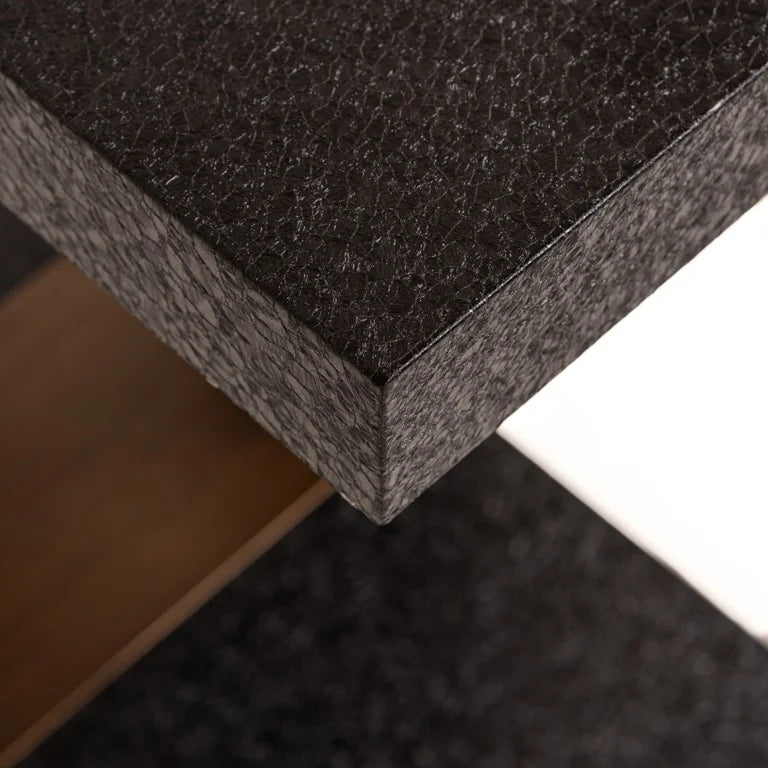 Fiecare detaliu este o punte între formă și emoție: linee drepte, un contrast vizual între solid și fragil, între negru mat și accente aurii strălucitoare. Este piesa care definește spațiul fără să-l domine — perfectă pentru holuri, livinguri sau spații de lucru unde estetica se contopește cu utilitatea.