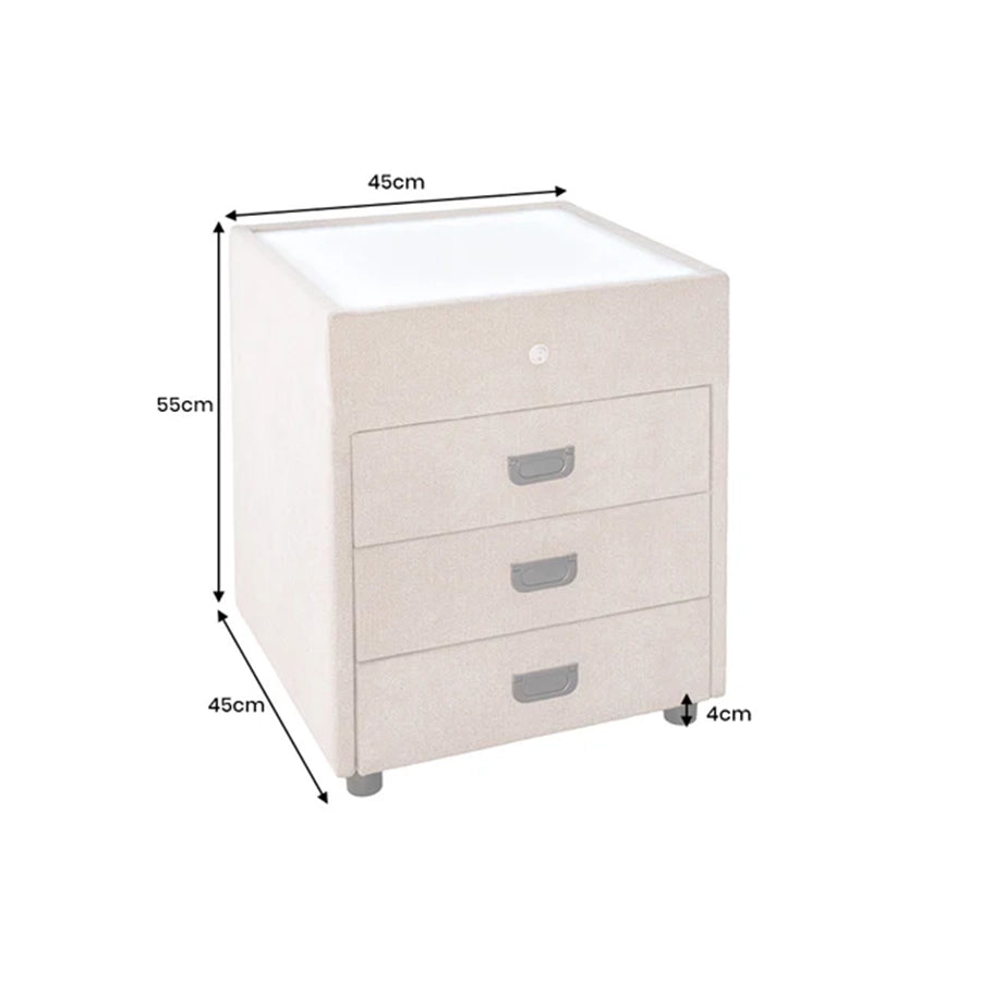Toulouse nu e doar o noptieră — este farul tău personal de lumină și catifea, acolo unde aduci telefonul, o carte sau gânduri nerostite. Culoarea bej îți șoptește calm, iar lumina LED creează umbre și reflecții discrete care te îmbracă în serenitate înainte să adormi. Alege Toulouse pentru nopțile tale pline de rafinament și textură — un mic univers de confort lângă pat.