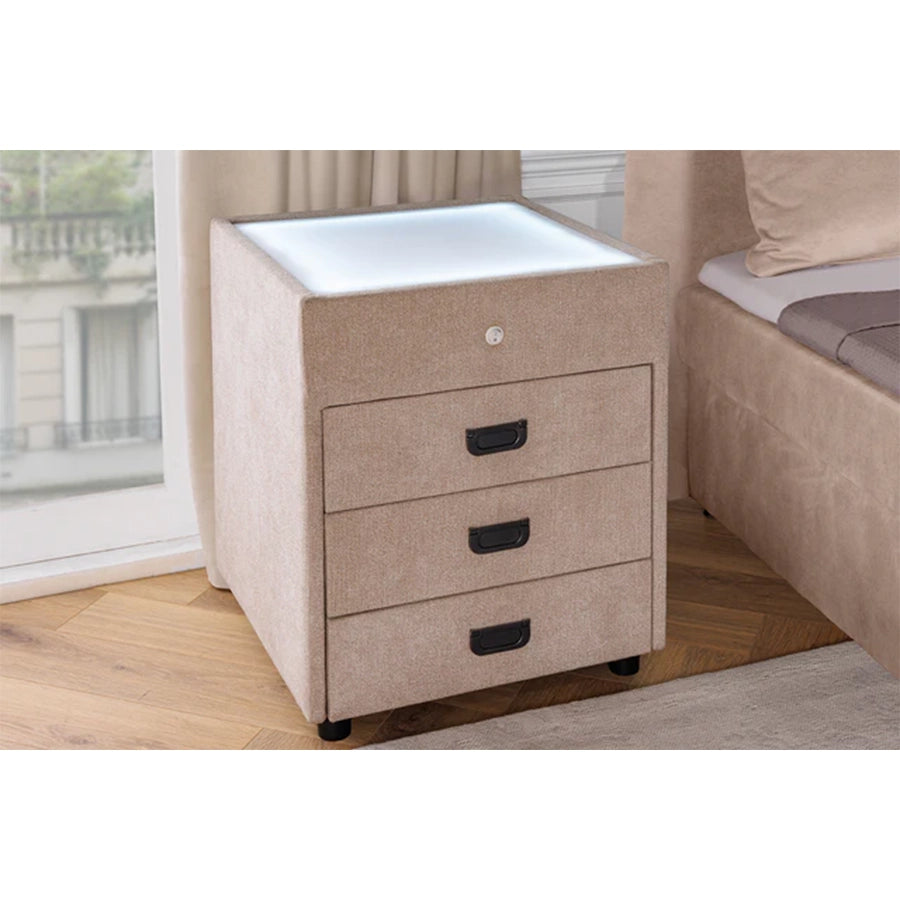 Într-o lumină blândă și îmbrățișată de catifea, noptiera Toulouse aduce sentimentul de acasă la capătul zilei. Tonul bej cald completează atmosfera liniștită a dormitorului, iar LED-ul integrat creează o lumină ambientală discretă — ideală pentru momentele dintre somn și vis.