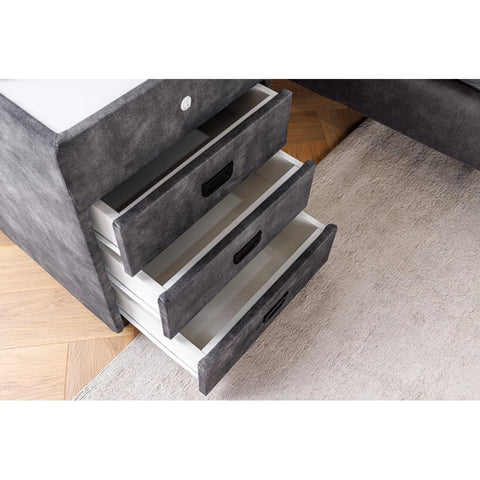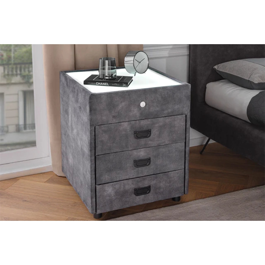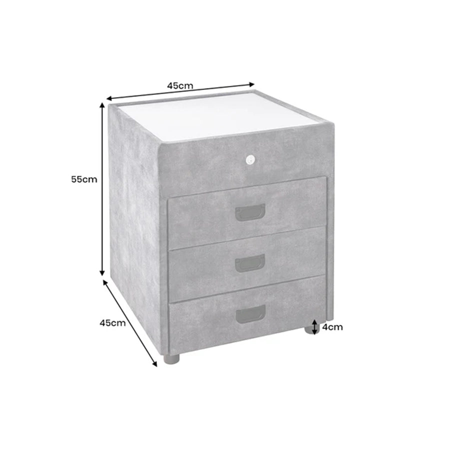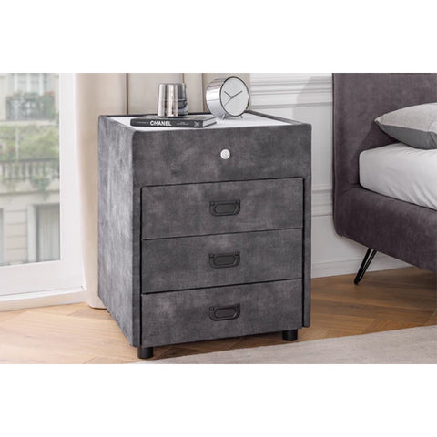 Imaginează-ți o piesă care luminează discret nopțile tale: noptiera Paris combină textura fină a catifelei gri cu un LED integrat, creând un colț de lumină caldă lângă pat. Designul compact și elegant o face potrivită pentru camere rafinate, unde fiecare element are rolul său vizual și funcțional.