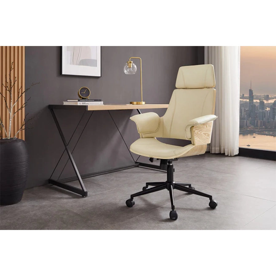 Într-o nuanță caldă bej-crem, scaunul Manhattan transformă colțul de birou într-un spațiu elegant și primitor. Materialul poliuretanic, fin și ușor de întreținut, îmbracă o structură robustă, oferind simultan confort și durabilitate. Designul său curat devine un companion vizual ideal pentru momentele de muncă concentrată.