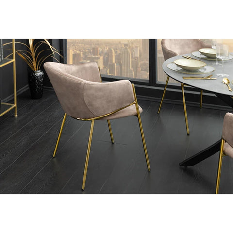 Scaun dining bej champagne din catifea Noblesse Promo