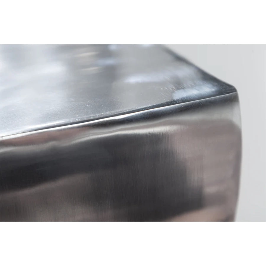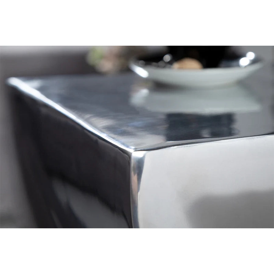 Se potrivește într-un living modern sau minimalist, unde finisajul metalic creează reflexii subtile și completează texturi mate — lemn, textile neutre sau materiale naturale. Poate fi utilizat ca loc de ședere suplimentar, ca suport pentru obiecte decorative sau ca contrast material într-o compoziție mai amplă a mobilierului.